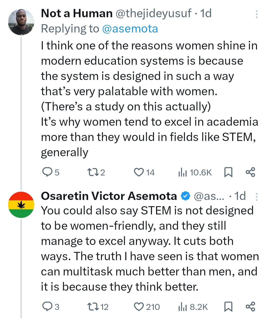 Nigerian tech professional, Victor Asemota has said that women were biologically created more superior thinkers and he has no idea why it’s taken men long to notice. He said this in reaction to a New Yorker article discussing women excelling better at school and in the workplace than men. The caption on the New Yorker’s post on X reads: “Men are floundering at school and in the workplace. Some conservatives blame a crisis of masculinity, but the problemsand their solutionsare far more complex.”