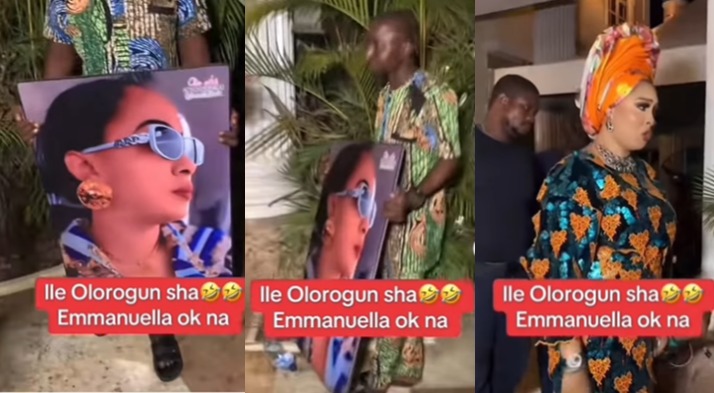 Social media users are reacting to a trending video of Emmanuella, wife of singer Kwam1, openly rejecting a portrait of herself which was presented to her by a painter at his mums funeral ceremony. The singer recently lost his mum and a party to celebrate the deceased mother was held in Lagos. At the party, Emmauella was accosted by a painter who handed her a portrait of herself. She appeared startled and openly rejected the portrait. According to her, she is in the land of the living and her portrait will not be paraded anytime soon. During funerals in Nigeria, a portrait of the deceased is paraded by a family member. While some Nigerians have knocked her for openly rejecting the portrait, others supported her. They argued that handing her a portrait of herself at a funeral ceremony was ill-timed. Watch the video below View this post on Instagram A post shared by Lindaikejiblog (@lindaikejiblogofficial) The post Social media users react to trending video of Kwam1’s wife, Emmanuella, turning down portrait of herself presented to her at his mums funeral ceremony appeared first on Linda Ikeji Blog. Click Here to Visit Orignal Source of Article http://www.lindaikejisblog.com/2025/1/social-media-users-react-to-trending-video-of-kwam1s-wife-emmanuella-turning-down-portrait-of-herself-presented-to-her-at-his-mums-funeral-ceremony.html