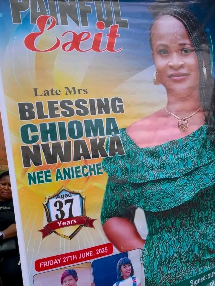 Chioma Blessing Nwaka, a 37-year-old woman who was brutally m8rdered by her husband was laid to rest in Abagana, Njikoka Local Government Area of Anambra State amidst grief and anguish.