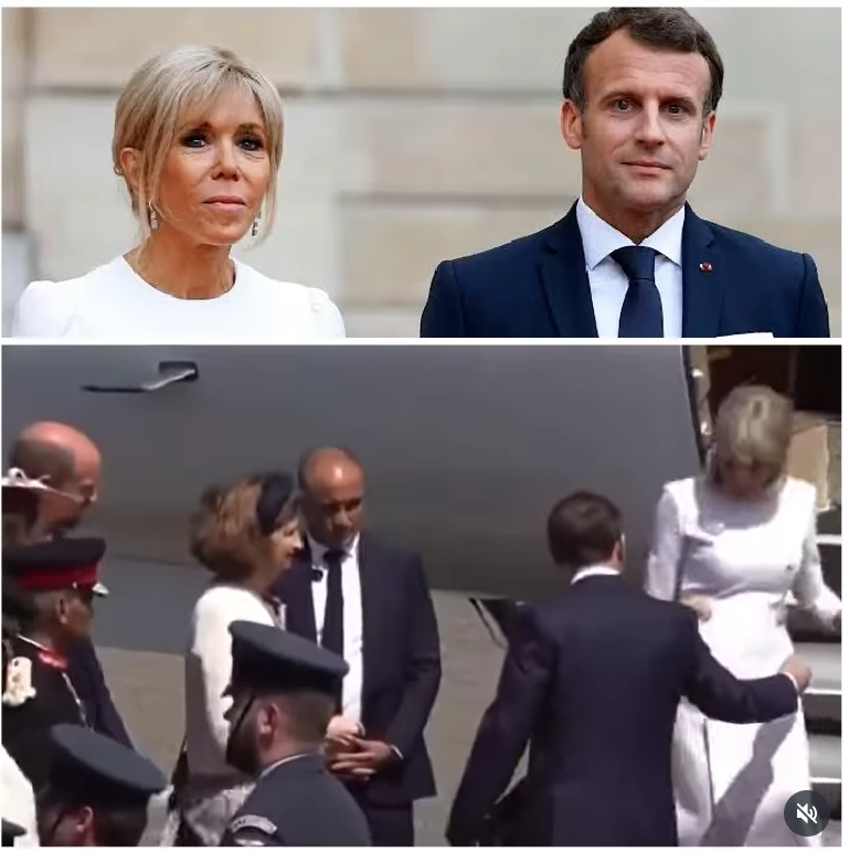 The moment reminded many of a similar incident in May when Brigitte was seen pushing her husband’s face aside while exiting a plane during their trip to Vietnam.