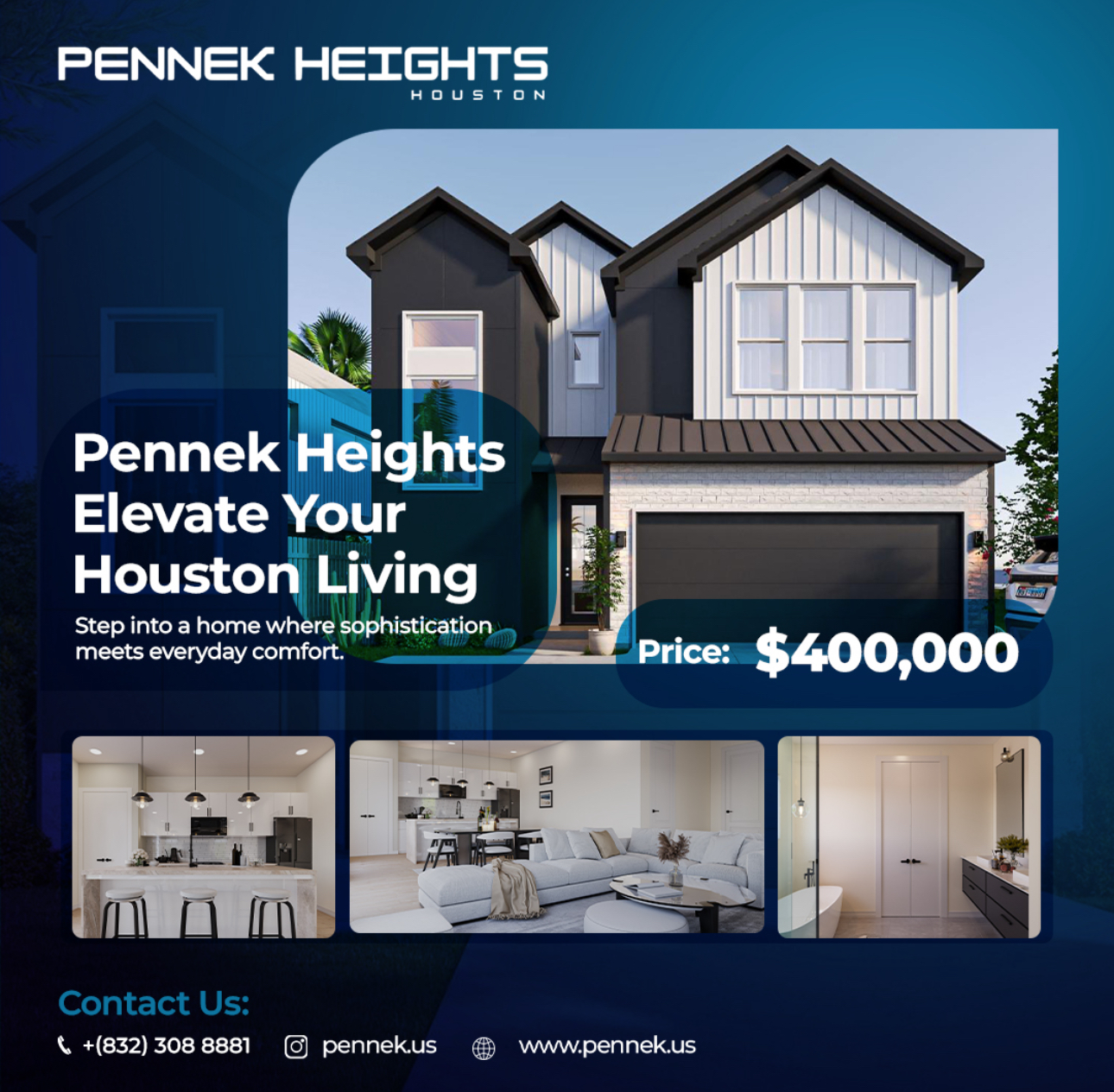 Experience elevated living in **Pennek Heights**, a premier gated community now rising in northwest Houston’s coveted **Highland Heights** neighborhood. Developed by international real estate leader **Pennek**, these homes blend modern elegance with thoughtful design, offering: