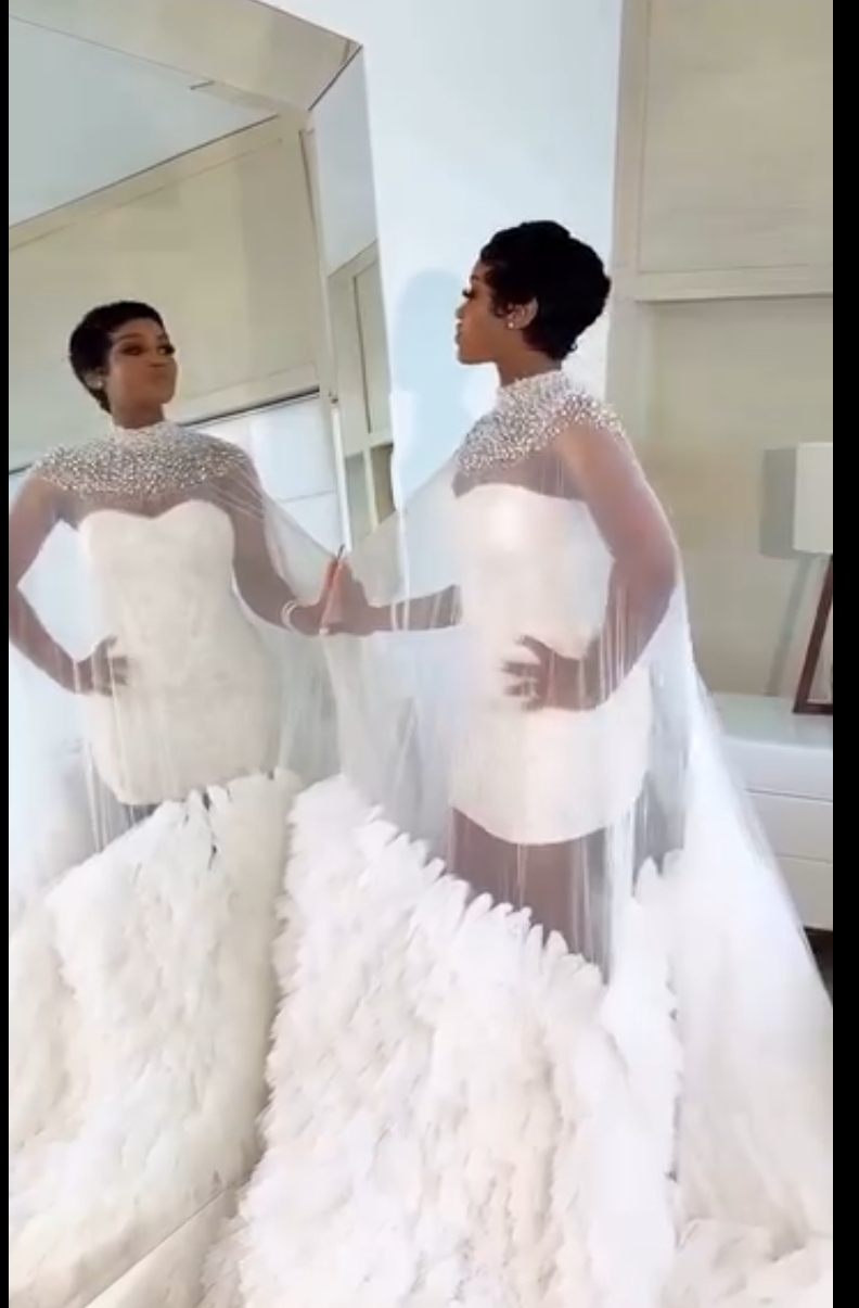 Chioma looked breathtaking in her wedding dress as she and her husband, singer Davido, held their white wedding ceremony in Miami today.